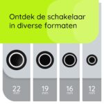 - Hoe groot is de schakelaar? De schakelaar heeft een diameter van 22mm.