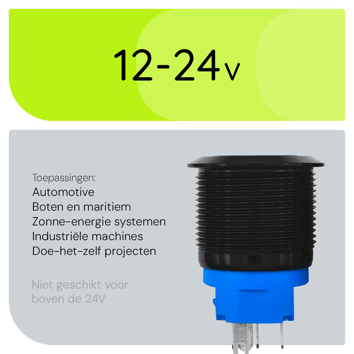 - Is de schakelaar geschikt voor zowel 12V als 24V systemen? Ja, de ProRide pulsschakelaar is compatibel met zowel 12V als 24V systemen.