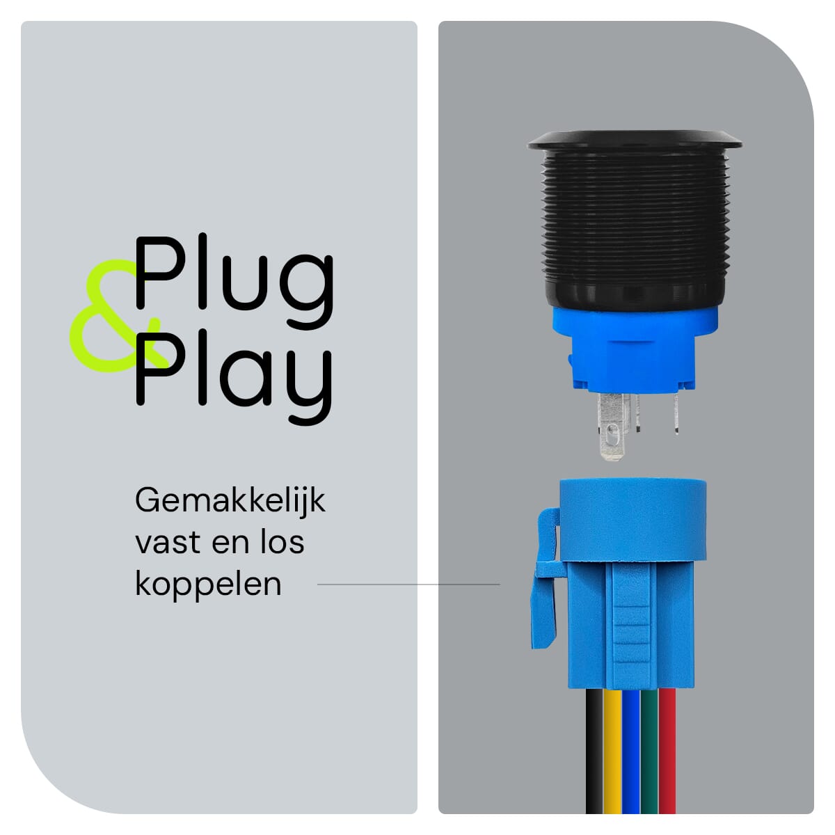 De ProRide Metalen pulsschakelaar werkt op een eenvoudige OFF-(ON) basis. Dit betekent dat de schakelaar alleen actief is wanneer je hem indrukt. Zodra je de knop loslaat, keert hij terug naar de uit-stand. De LED-indicatie licht op wanneer de schakelaar ingedrukt is, zodat je altijd weet wanneer hij actief is.