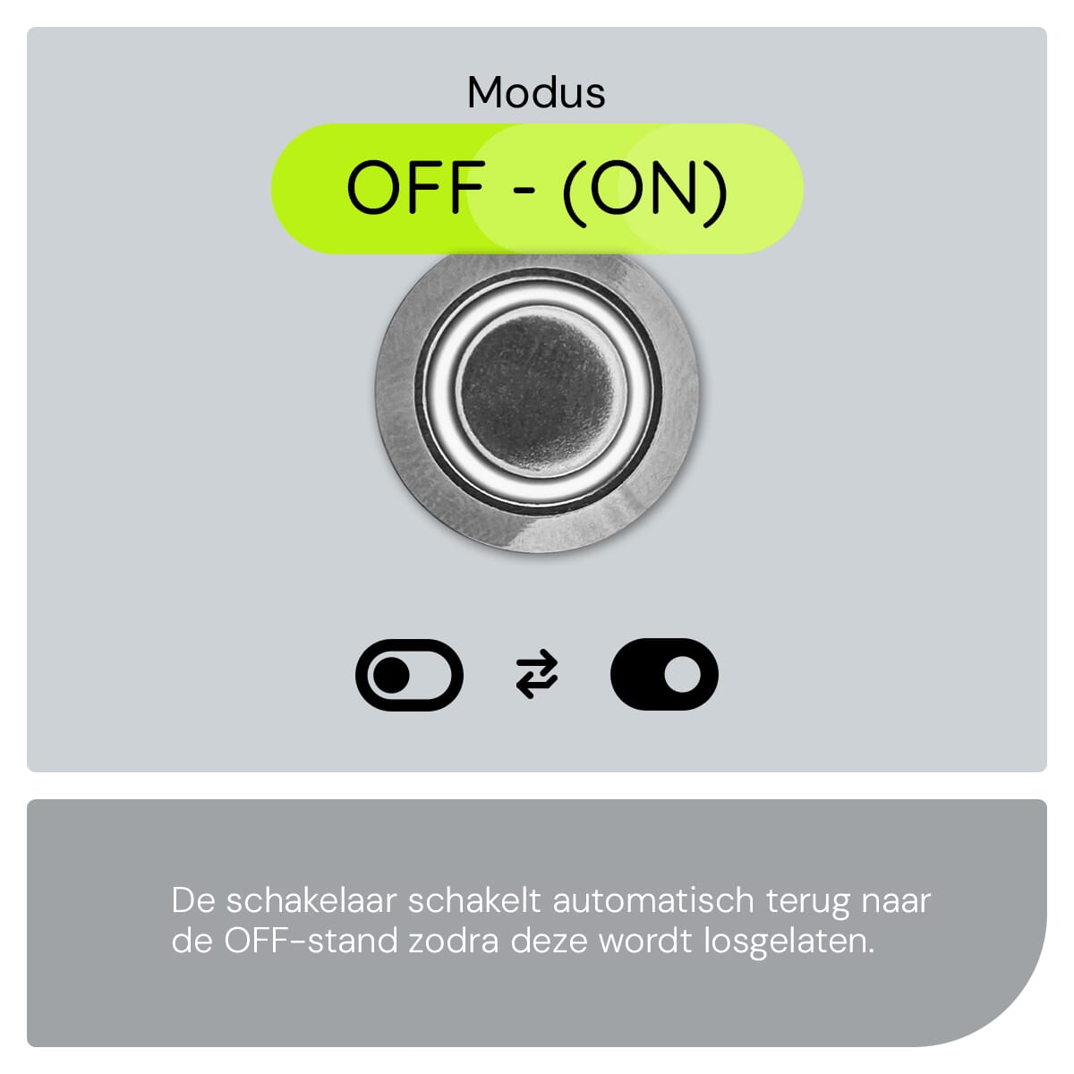 De ProRide Metalen pulsschakelaar werkt op een eenvoudige OFF-(ON) basis. Dit betekent dat de schakelaar alleen actief is wanneer je hem indrukt. Zodra je de knop loslaat, keert hij terug naar de uit-stand. Dit maakt hem ideaal voor toepassingen waarbij tijdelijke activering nodig is, zoals deurbel- of alarmsystemen.