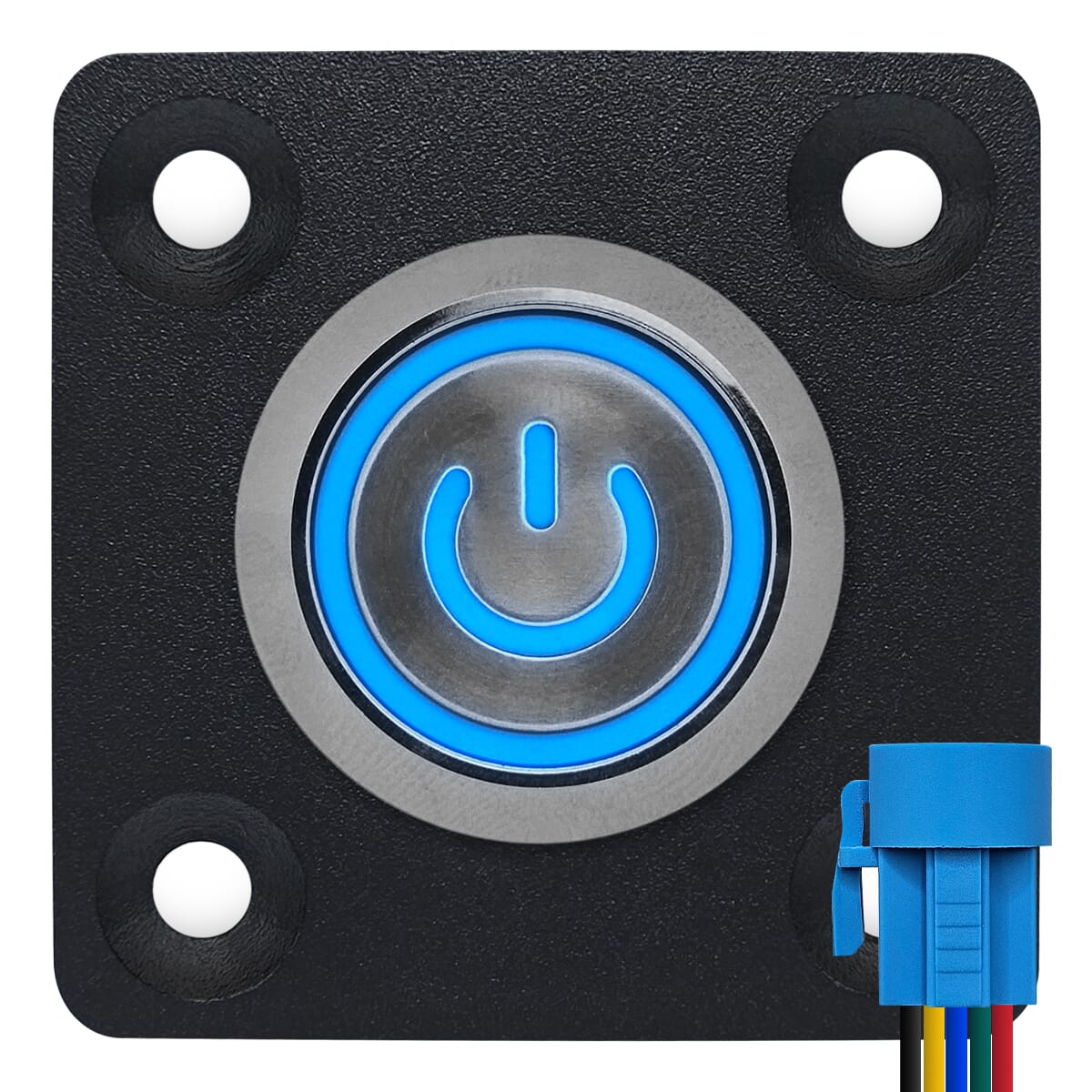 ProRide Metalen pulsschakelaar Inbouw 220V OFF-(ON) – 22mm – Momentschakelaar met Enkelvoudig inbouwpaneel en Aansluitkabel – Spatwaterdicht – LED indicatie Blauw