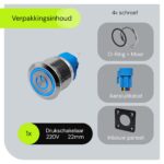 - Wat is de diameter van de schakelaar? De schakelaar heeft een diameter van 22mm, wat hem geschikt maakt voor standaard inbouwpanelen.