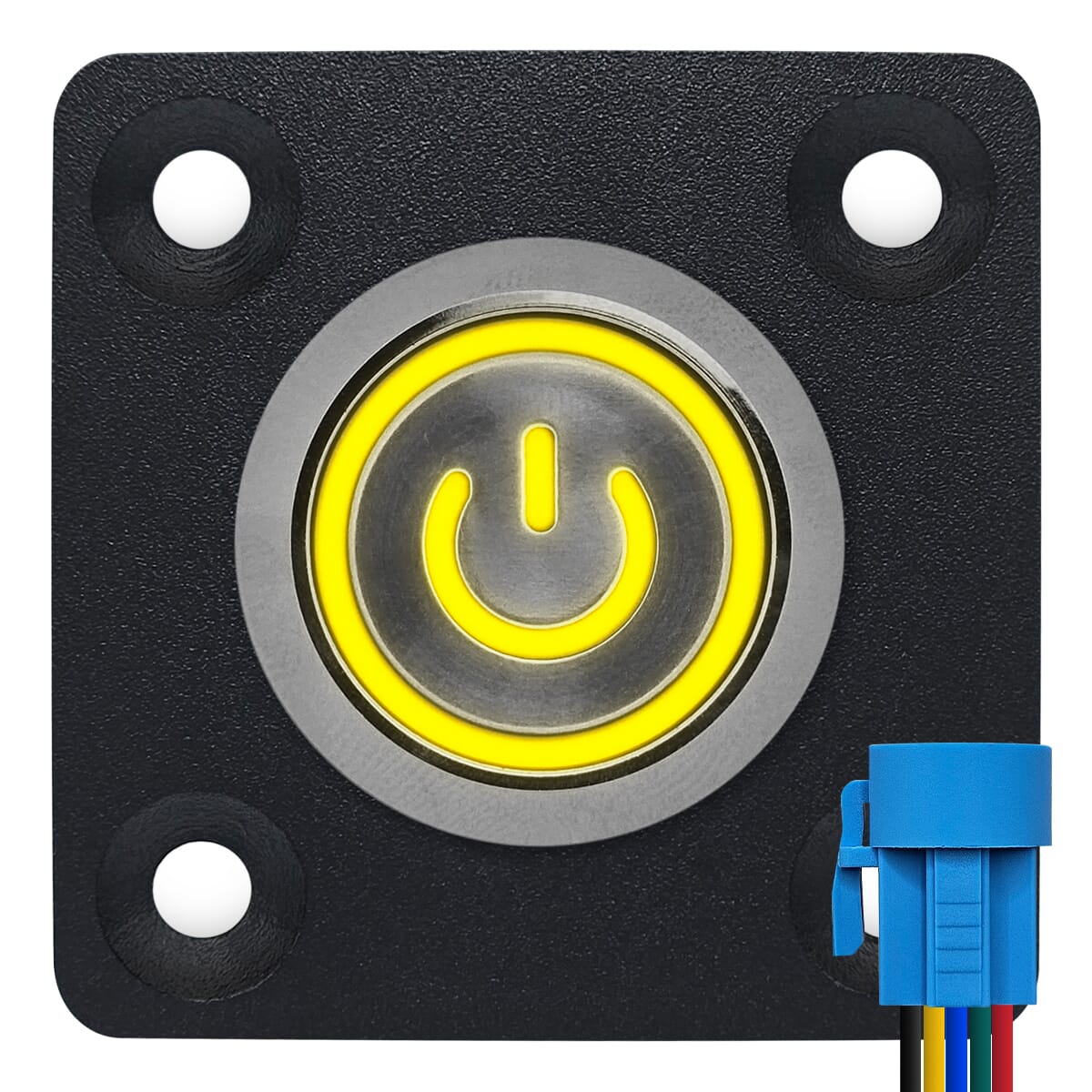 De ProRide Metalen pulsschakelaar werkt op een eenvoudige OFF-(ON) basis. Dit betekent dat de schakelaar normaal gesproken in de ‘uit’ positie staat en alleen ‘aan’ gaat wanneer je erop drukt. De gele LED-indicatie licht op wanneer de schakelaar wordt ingedrukt, zodat je direct visuele feedback krijgt.