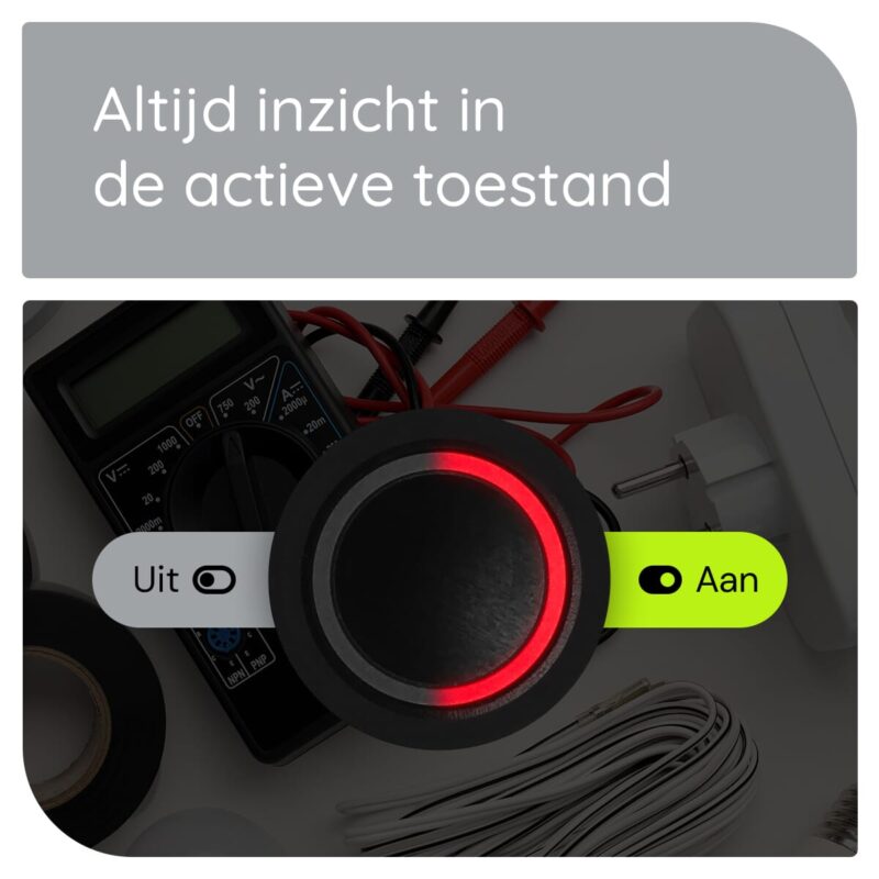 Dankzij de ingebouwde rode LED-indicator weet je altijd of de schakelaar actief is. Dit biedt niet alleen extra gemak, maar ook een verhoogde veiligheid, vooral in donkere ruimtes of ’s nachts.