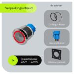- Wat is de diameter van de schakelaar? De schakelaar heeft een diameter van 22mm, wat een standaardmaat is voor veel toepassingen.