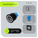 - Wat is de diameter van de schakelaar? De schakelaar heeft een diameter van 22mm, wat hem compact en veelzijdig maakt.
