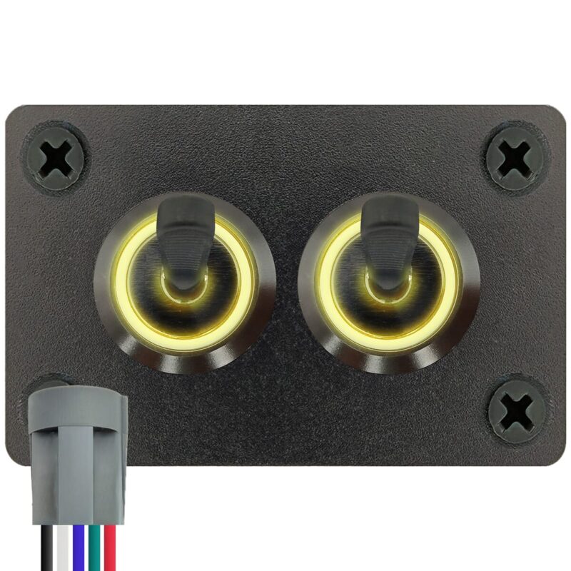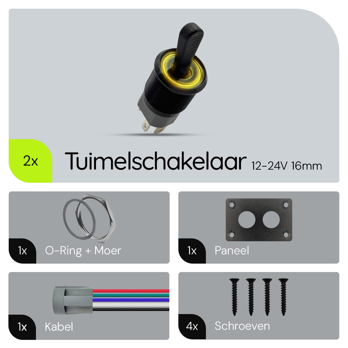 ProRide Metalen Tuimelschakelaar 12-24V OFF-ON – Tweevoudig Inbouwpaneel – 16mm – LED indicatie Geel