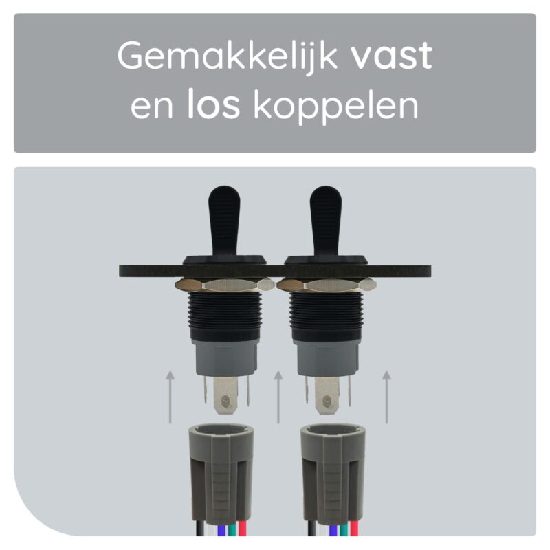 Deze schakelaar is voorzien van een rode LED-indicatie, die duidelijk aangeeft wanneer de schakelaar in de ‘ON’ positie staat. Dit is vooral nuttig in situaties met weinig licht, zoals in voertuigen tijdens nachtelijke ritten.