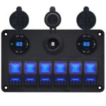 ProRide® Schakelpaneel 12V voor Auto/Boot – USB Stopcontact 4 Poorten met Schakelaar/Voltmeter – QC3.0 – 6 Schakelaars + 12V/24V Stopcontact