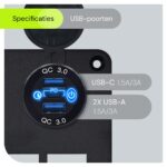 - Snel en efficiënt opladen: De USB-poorten met Quick Charge 3.0 zorgen ervoor dat apparaten tot 4 keer sneller opladen dan standaard opladers.