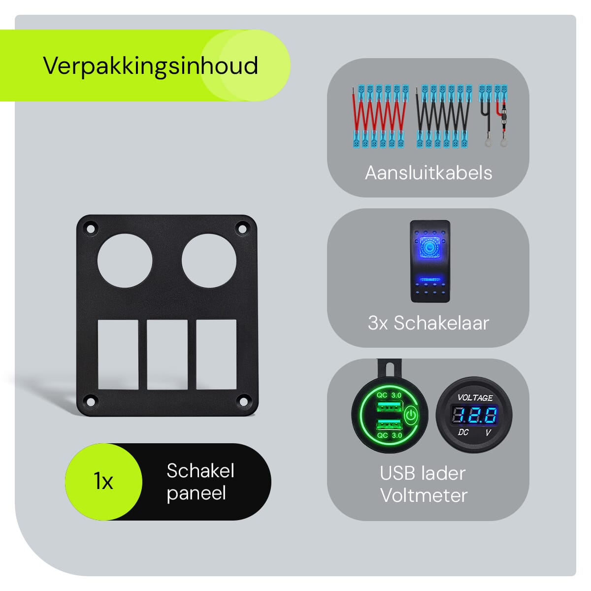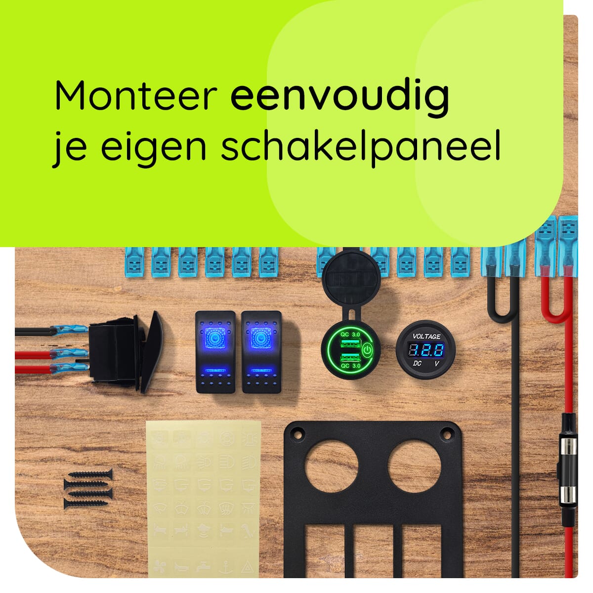 - Multifunctioneel: Combineert schakelaars, USB C lader en voltmeter in één compact paneel.