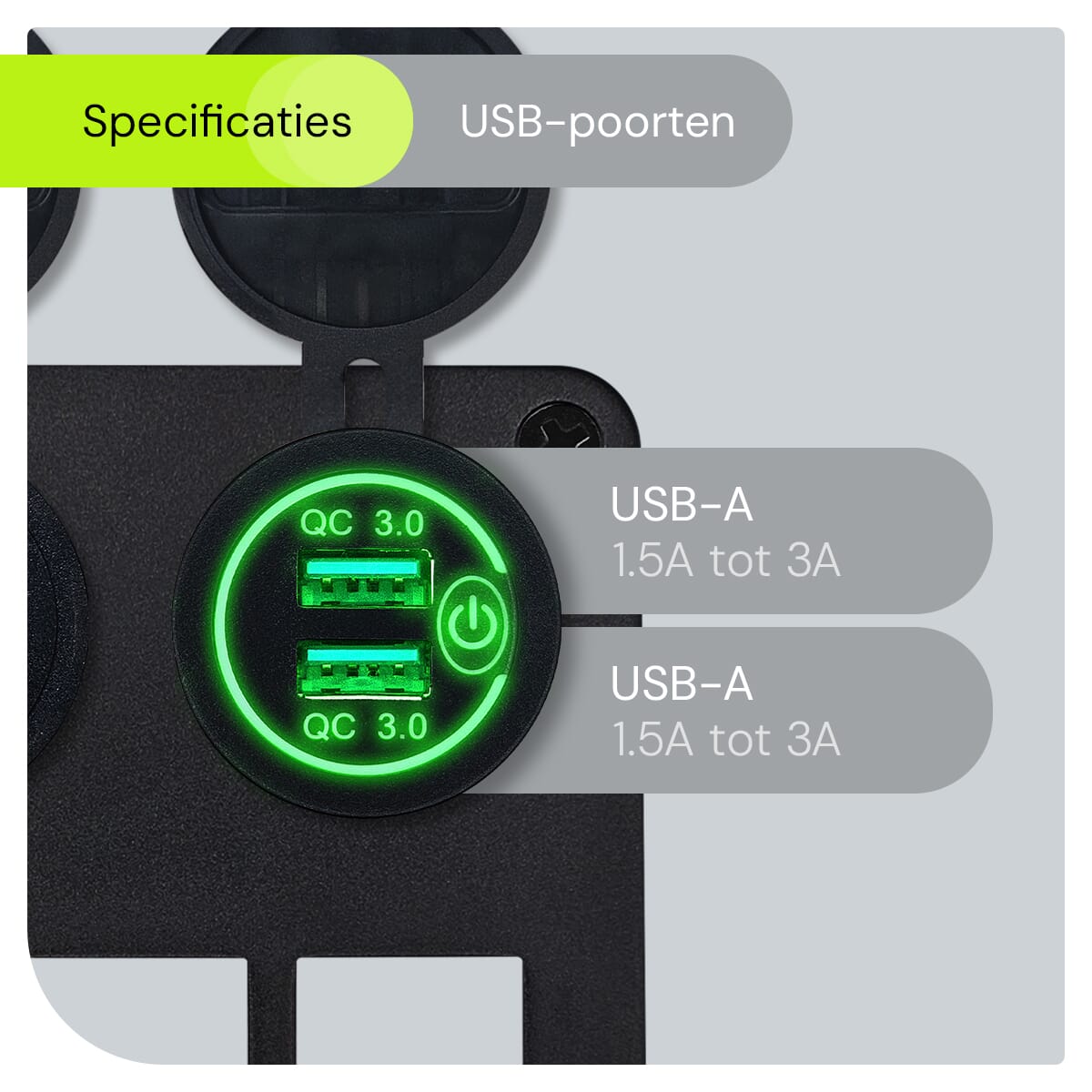ProRide Schakelpaneel 12V voor Auto/Boot – USB C Lader 2 Poorten met Voltmeter – 30W/QC4.0 – 3 Schakelaars