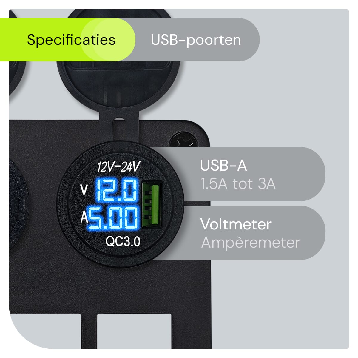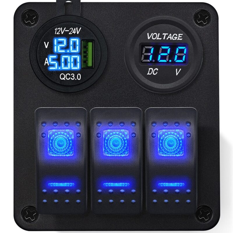 - Multifunctioneel: Combineert een USB C lader, voltmeter en schakelaars in één compact paneel.
