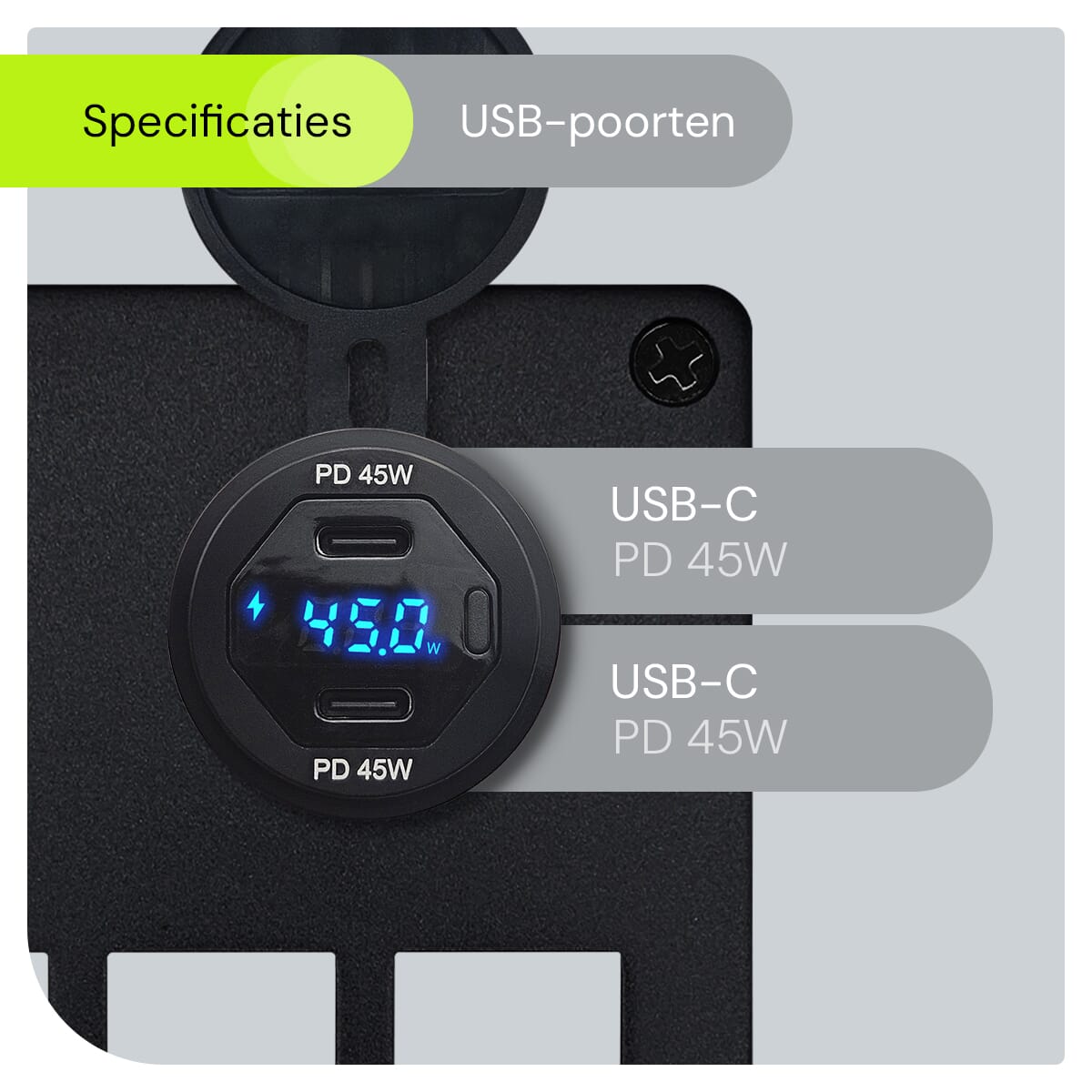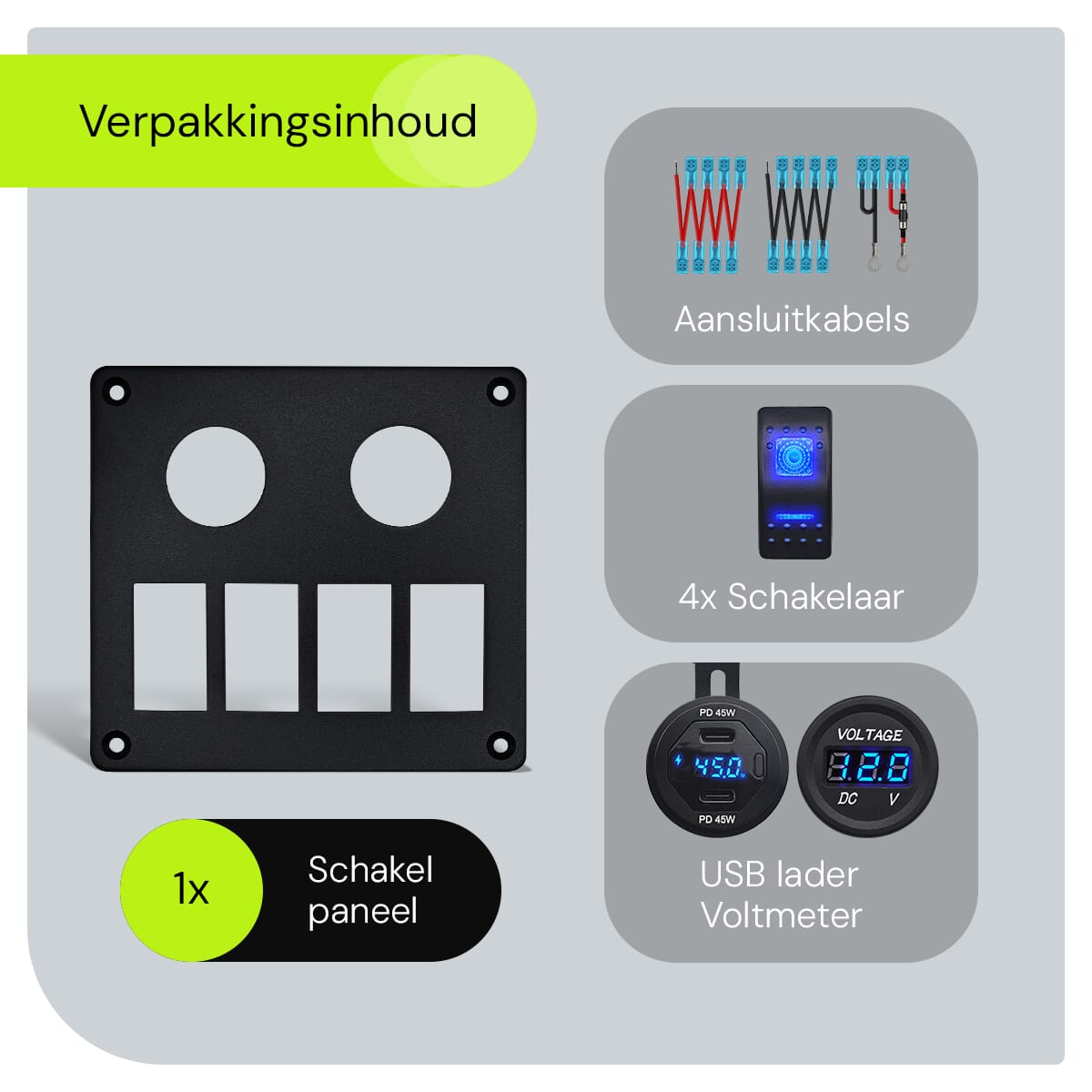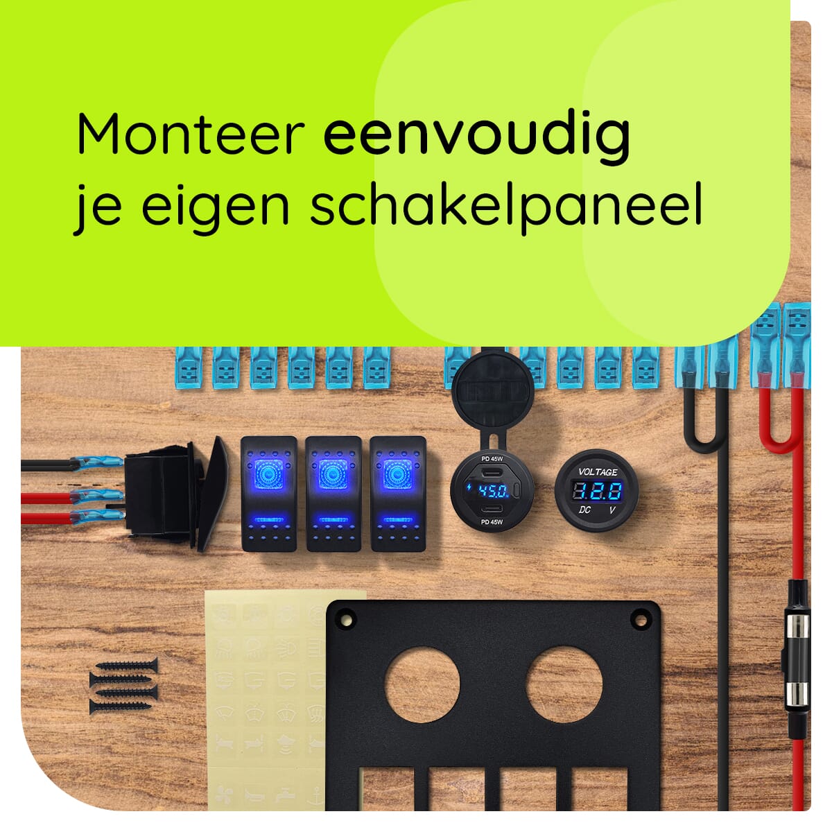 - Multifunctioneel: Combineert schakelaars, USB C lader en meters in één compact paneel.