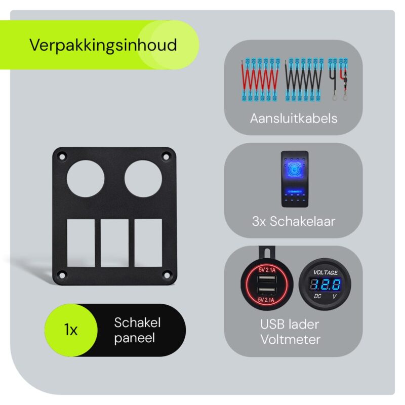 - Multifunctioneel: Combineert schakelaars, USB C lader en voltmeter in één compact paneel.