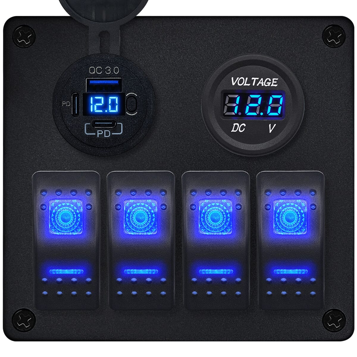 - Multifunctioneel: Combineert schakelaars, USB C lader en voltmeter in één compact paneel.
