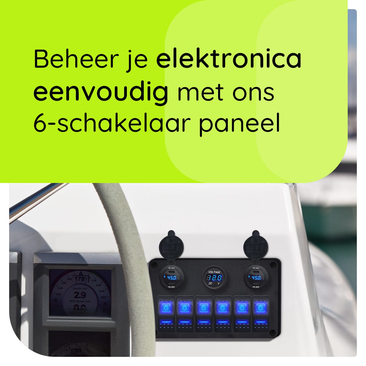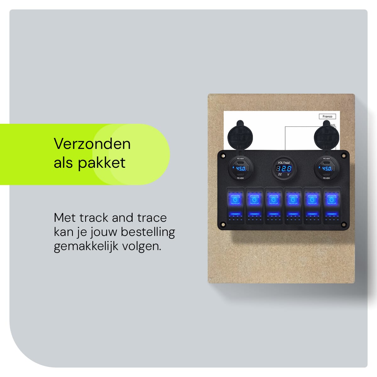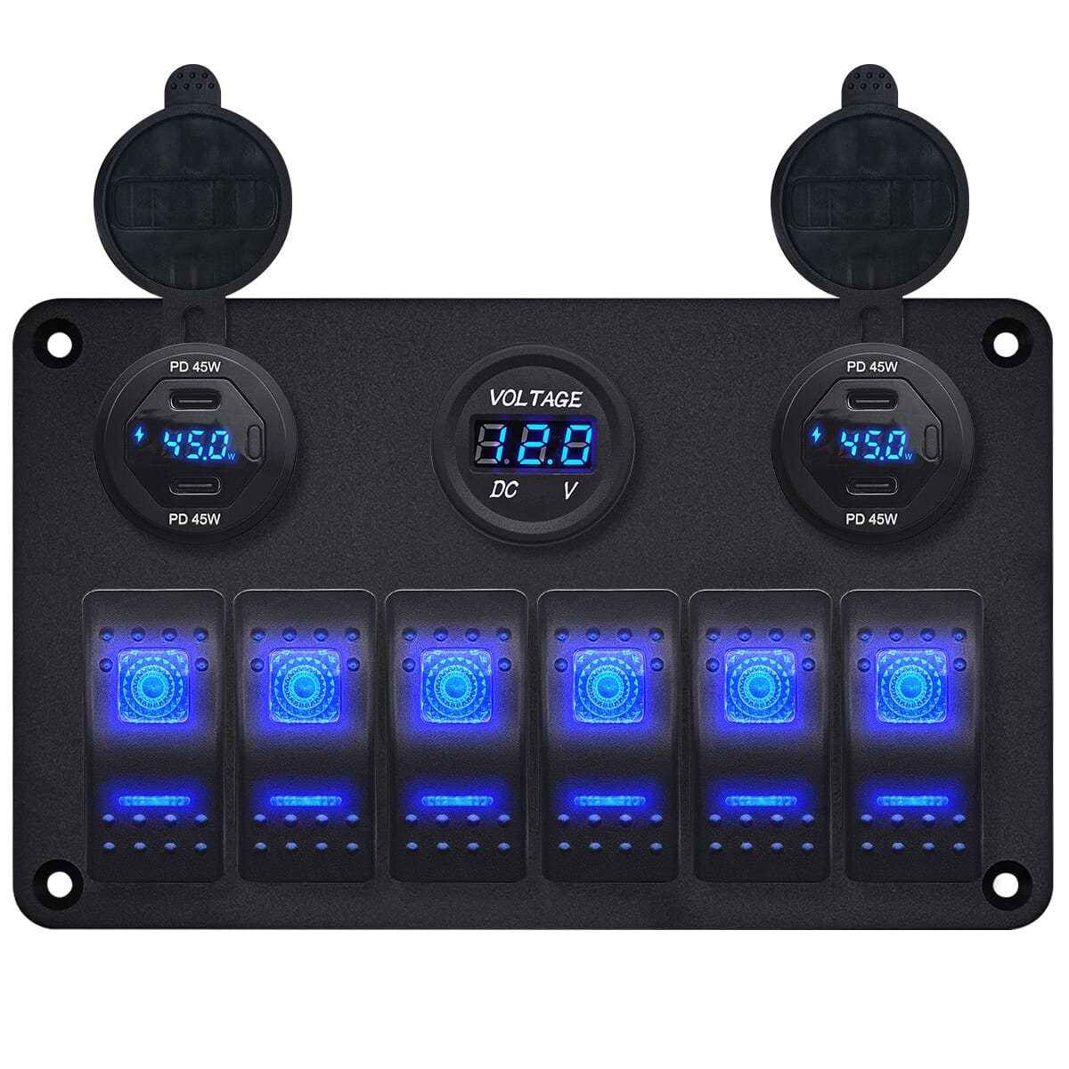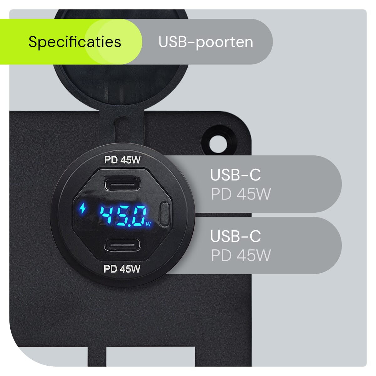 - Multifunctioneel: Combineert een USB C lader, voltmeter, wattagemeter en schakelaars in één compact paneel.