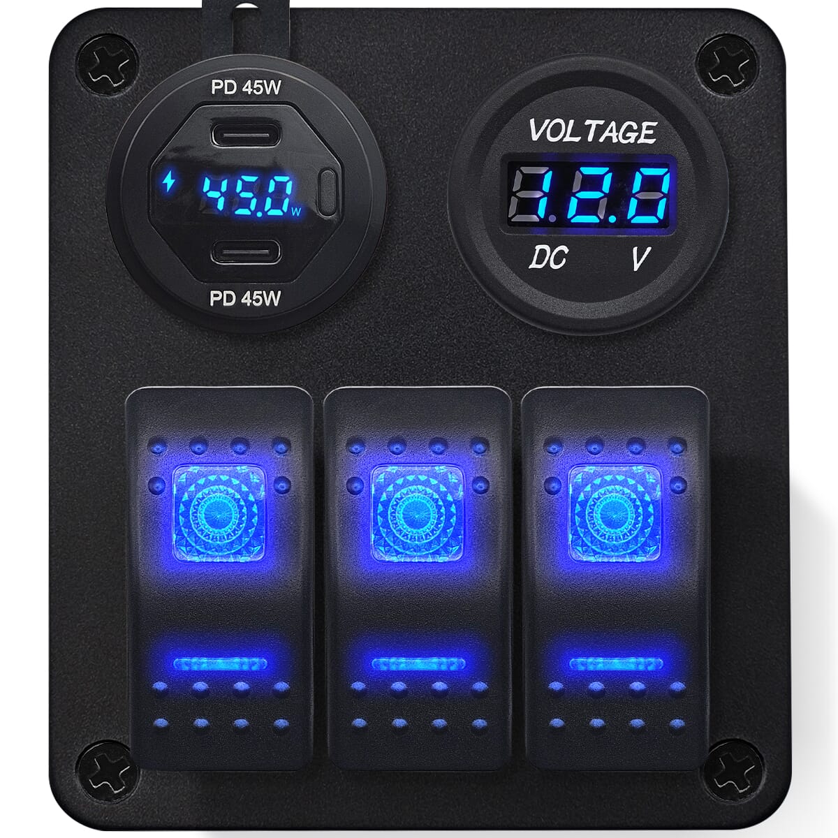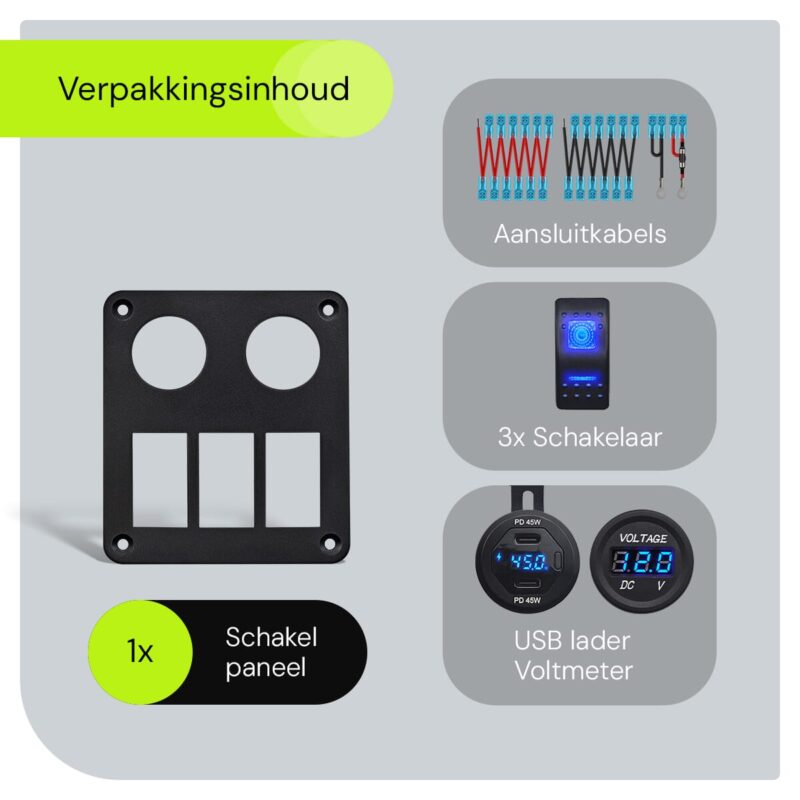 - Multifunctioneel: Combineert schakelaars, USB lader en voltmeter in één compact paneel.