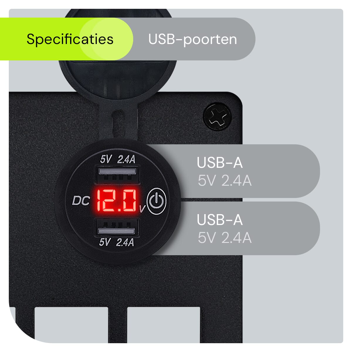 - Multifunctioneel: Combineert schakelaars, USB lader en voltmeter in één compact paneel.