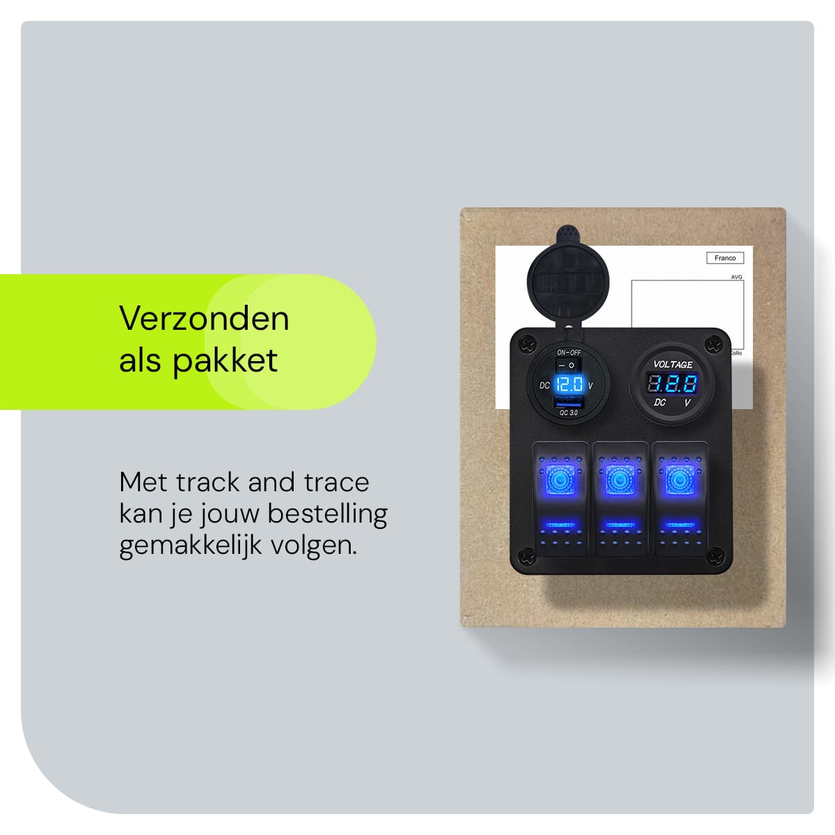 - Welke apparaten kan ik aansluiten op de schakelaars? Je kunt verschillende 12V-apparaten aansluiten, zoals verlichting, pompen of andere accessoires.