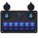 ProRide Schakelpaneel 12V voor Auto/Boot – USB Lader 2 Poorten met Voltmeter/Ampèremeter – QC3.0 – 6 Schakelaars