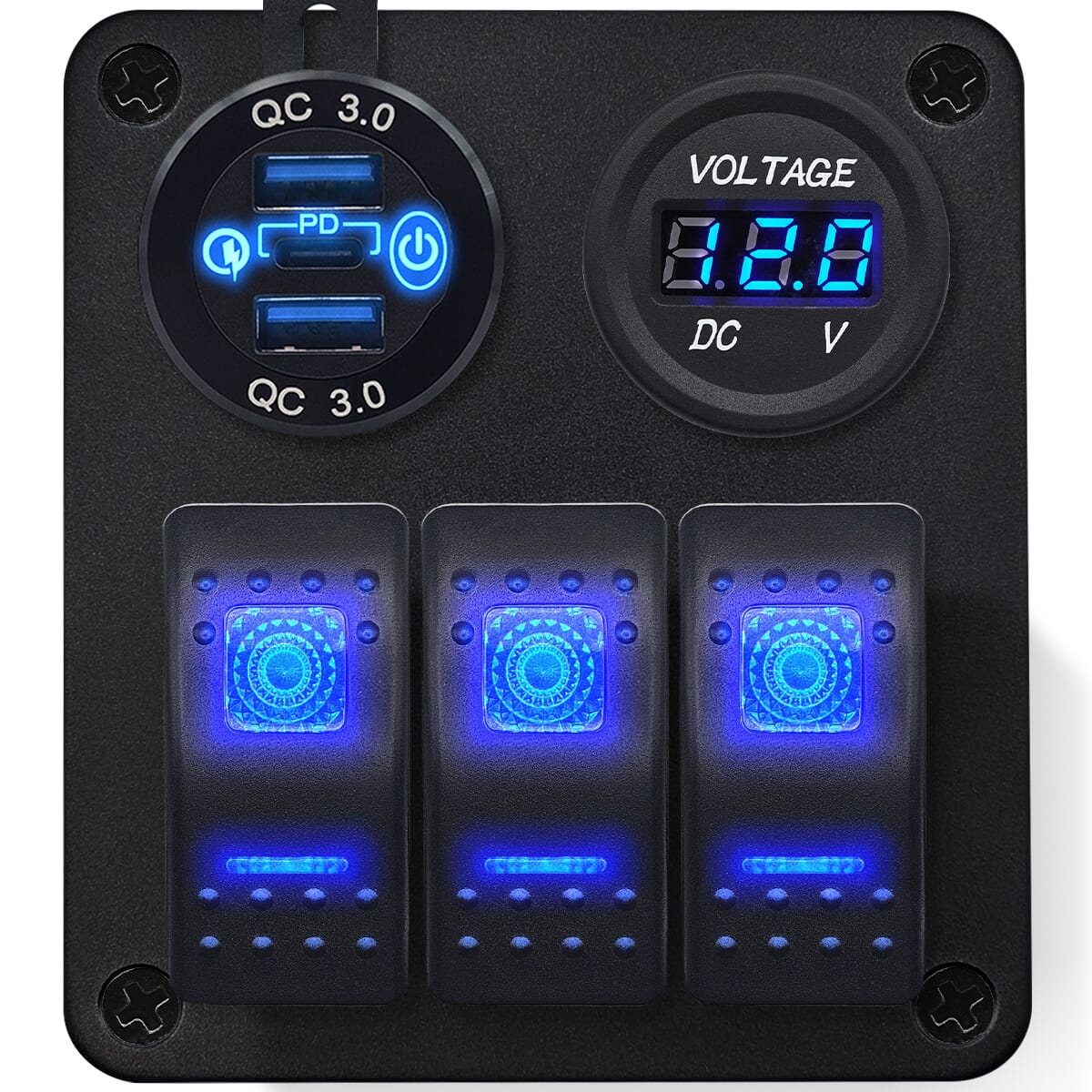 - Multifunctioneel: Combineert schakelaars, USB lader en voltmeter in één compact paneel.