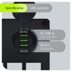 - Snelladen: Ondersteunt QC3.0 voor razendsnel opladen van je apparaten.