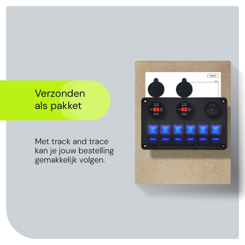 - Is het schakelpaneel waterdicht? Ja, het ProRide Schakelpaneel 12V is ontworpen om bestand te zijn tegen vochtige omgevingen, waardoor het ideaal is voor gebruik in boten.