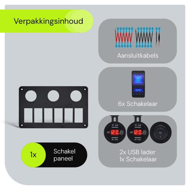 ProRide Schakelpaneel 12V voor Auto/Boot – USB Lader 4 Poorten met Schakelaar – 5V/2.4A – 6 Schakelaars