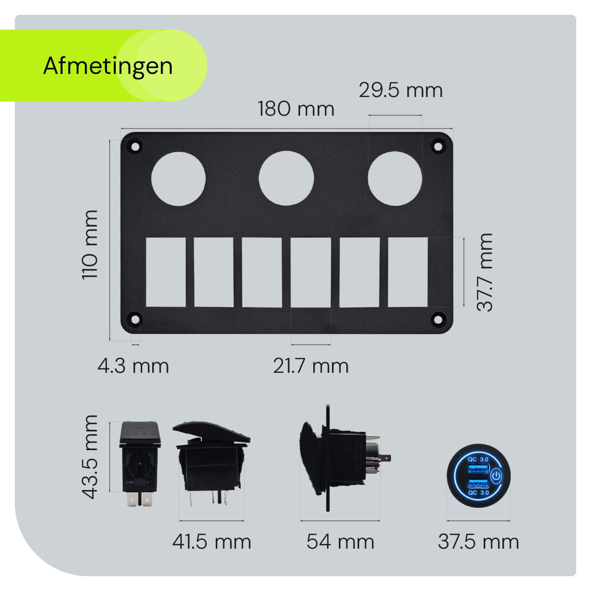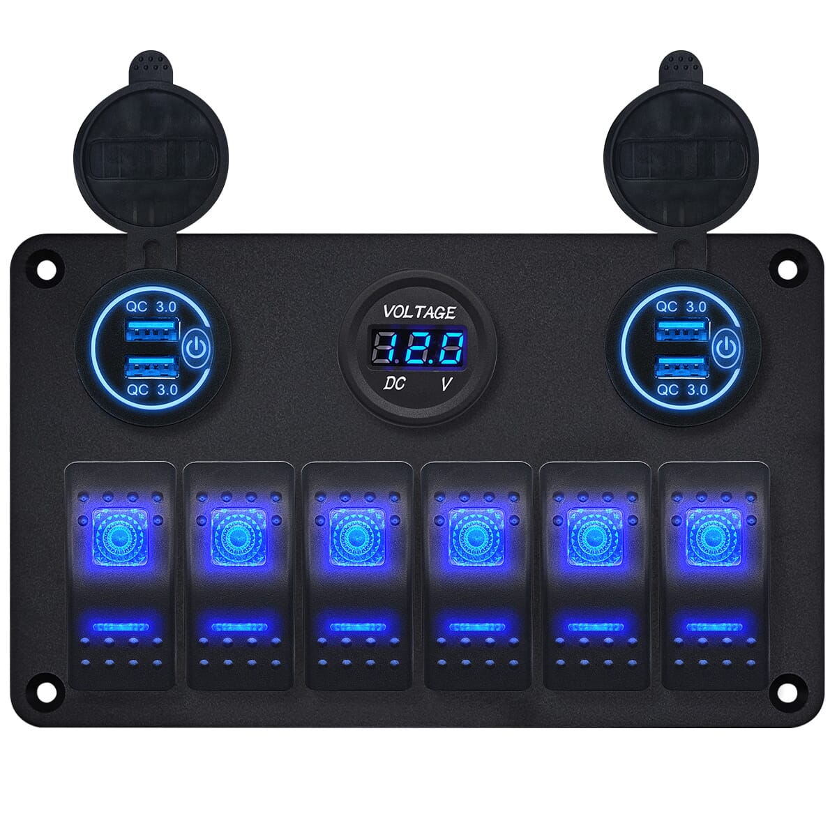 - Multifunctioneel: Combineert USB-laders, schakelaars en een voltmeter in één compact paneel.