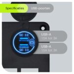 Dankzij de Quick Charge 3.0 technologie kun je je apparaten tot wel vier keer sneller opladen dan met een standaard USB-lader. Dit betekent minder wachttijd en meer tijd om te genieten van je reis. De vier USB-poorten zorgen ervoor dat je meerdere apparaten tegelijk kunt opladen, wat ideaal is voor lange ritten of boottochten.