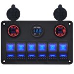 ProRide Schakelpaneel 12V voor Auto/Boot – USB Lader 4 Poorten met Voltmeter – QC3.0 – PUSB1QC-R – 6 Schakelaars