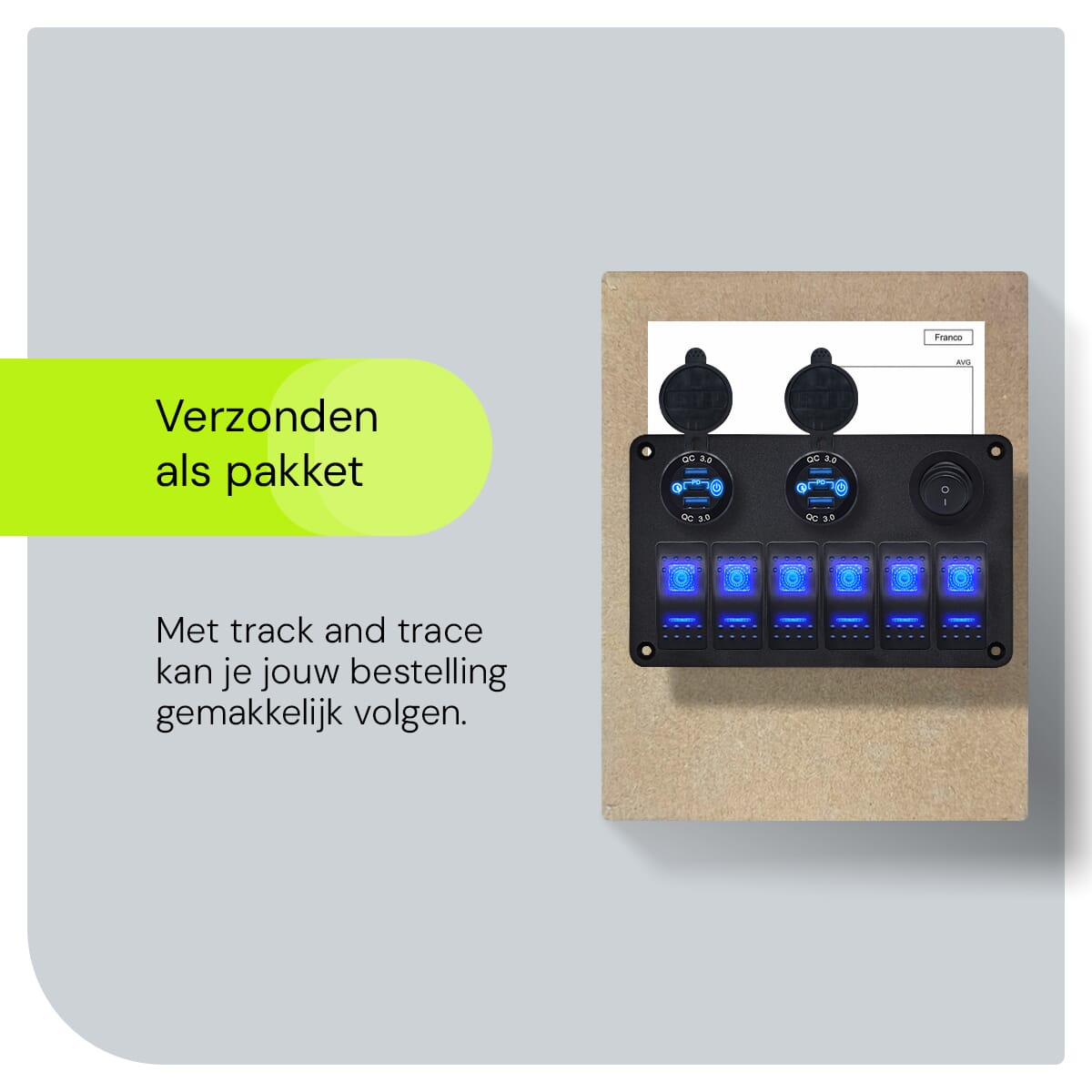 - Is het schakelpaneel waterbestendig? Ja, het paneel is ontworpen om bestand te zijn tegen vochtige omgevingen, ideaal voor gebruik in boten.