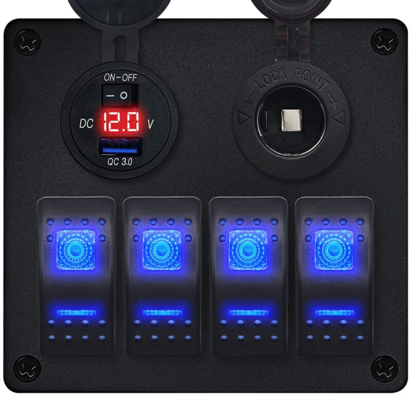 - Multifunctioneel: Dit schakelpaneel combineert een USB-lader, een sigaretten stopcontact en vier schakelaars in één compact apparaat.