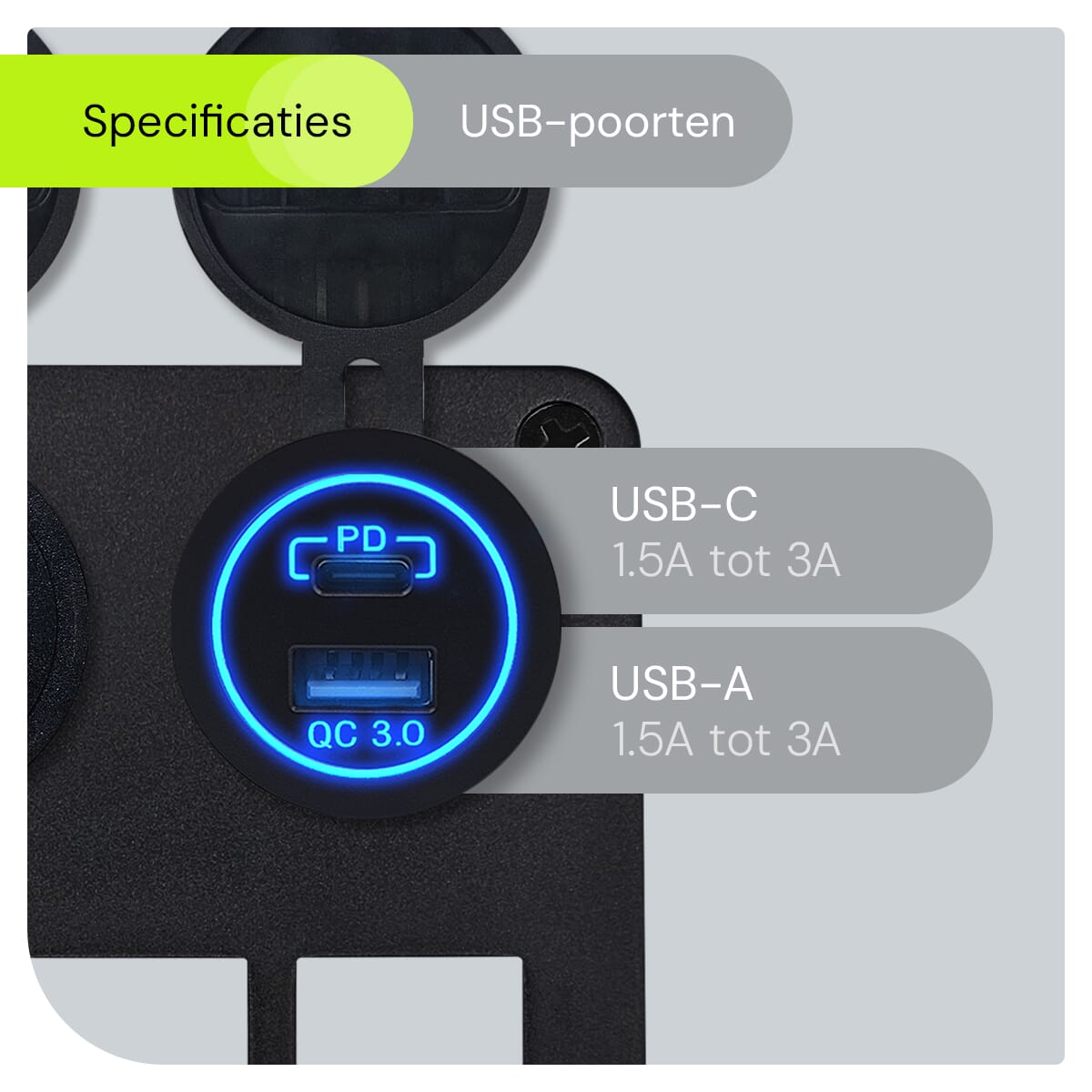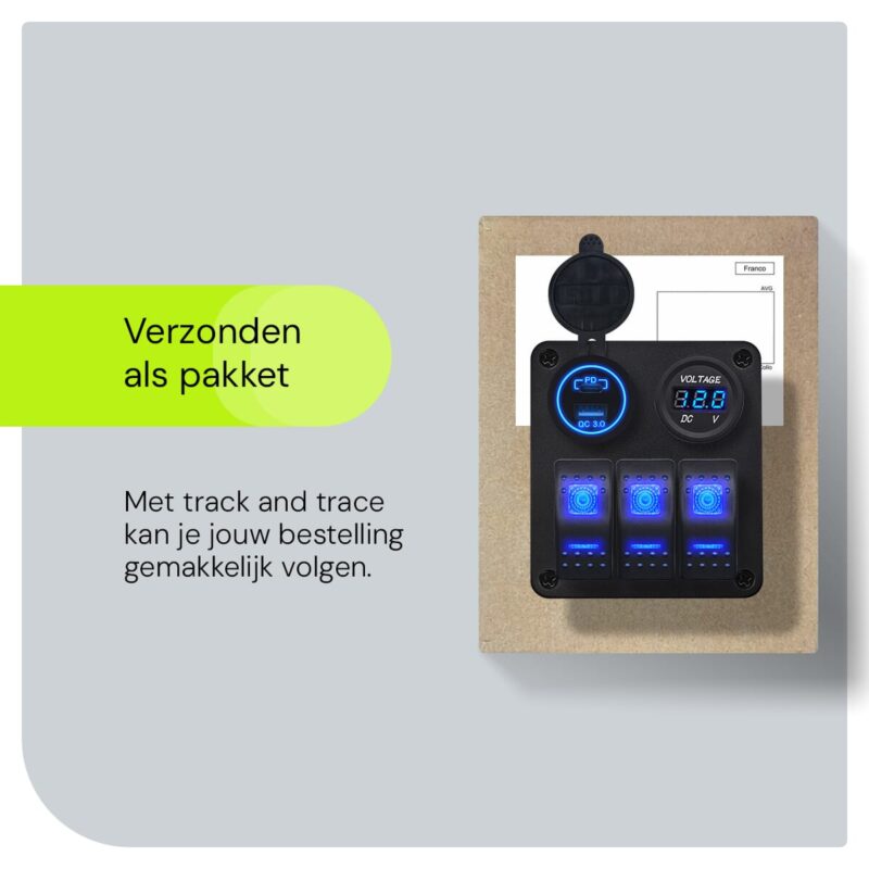 ProRide Schakelpaneel 12V voor Auto/Boot – USB Lader met Voltmeter – 5V/2.4A – 3 Schakelaars