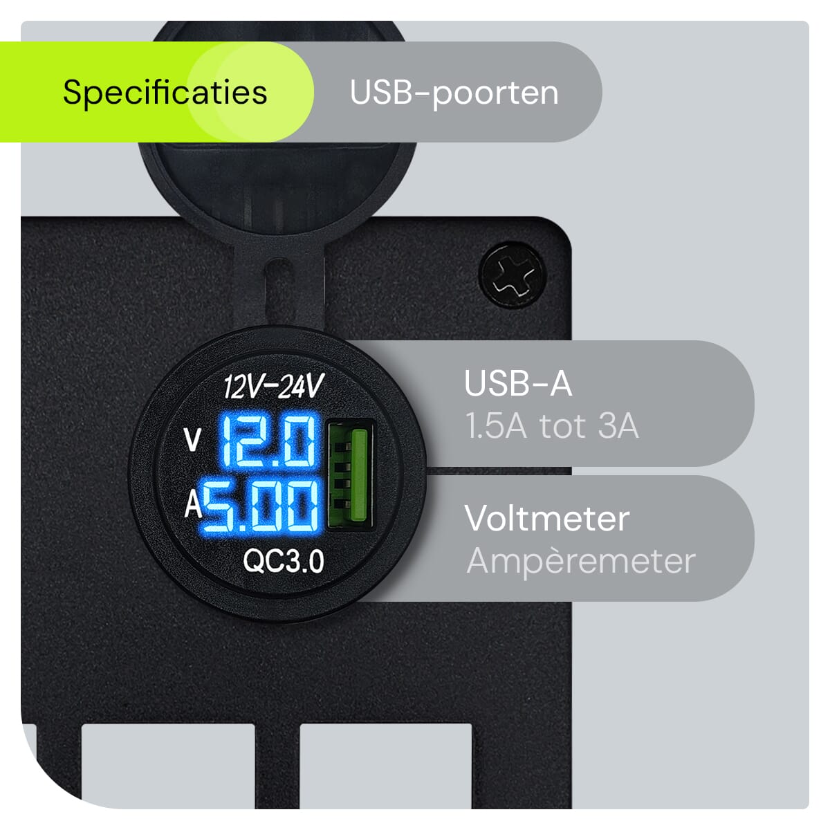 - Multifunctioneel: Combineert schakelaars, USB lader, voltmeter en ampèremeter in één compact paneel.
