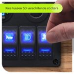 - Welke apparaten kan ik aansluiten op de schakelaars? Je kunt allerlei 12V apparaten aansluiten, zoals verlichting, pompen en andere accessoires.
