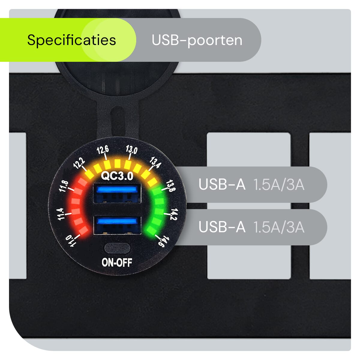 • Real-time Monitoring: De geïntegreerde voltmeter laat je de status van de voedingsspanning zien, ideaal voor het monitoren van de gezondheid van je voertuig.