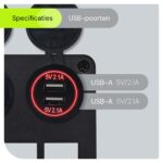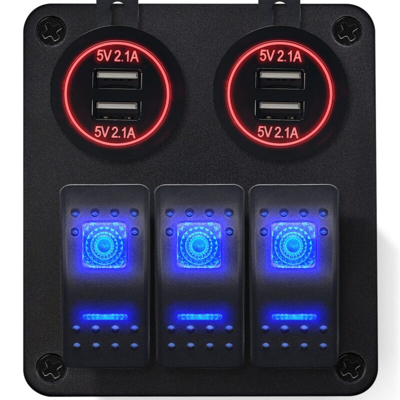 ProRide® Schakelpaneel 12V voor Auto/Boot – USB Stopcontact 4 Poorten – 5V/2.1A – 3 Schakelaars