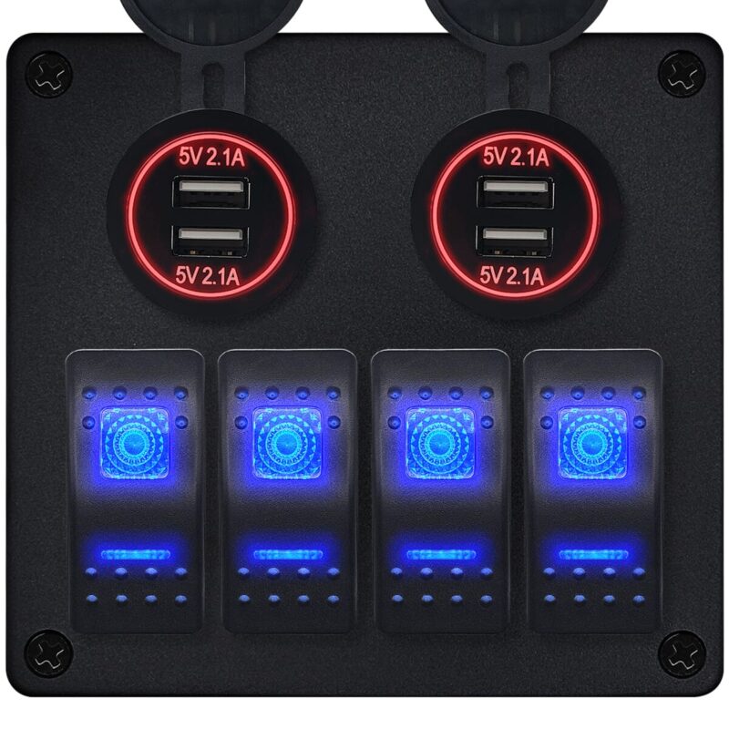 Verhoog de functionaliteit en het gemak in je auto of boot met het ProRide® Schakelpaneel 12V. Dit paneel beschikt over vier USB stopcontacten, uitgevoerd met rode LED verlichting, met een uitgang van 5V/2.1A, ideaal voor het opladen van smartphones en andere kleine elektronische apparaten. Met vier eenvoudig te gebruiken schakelaars biedt dit paneel volledige controle over je elektrische apparatuur.