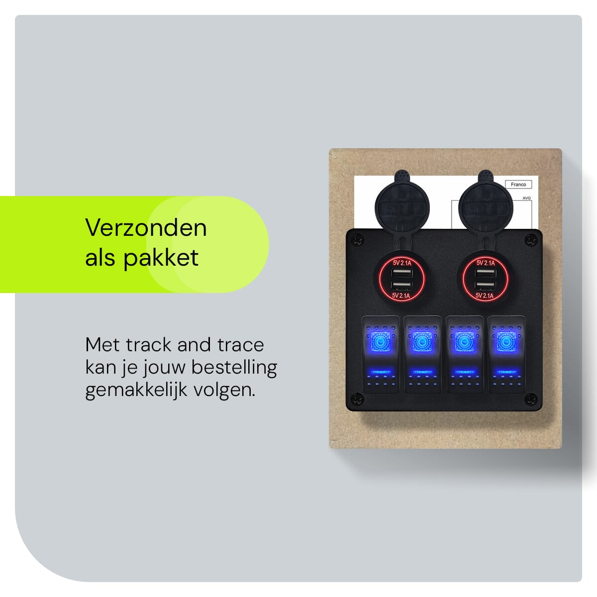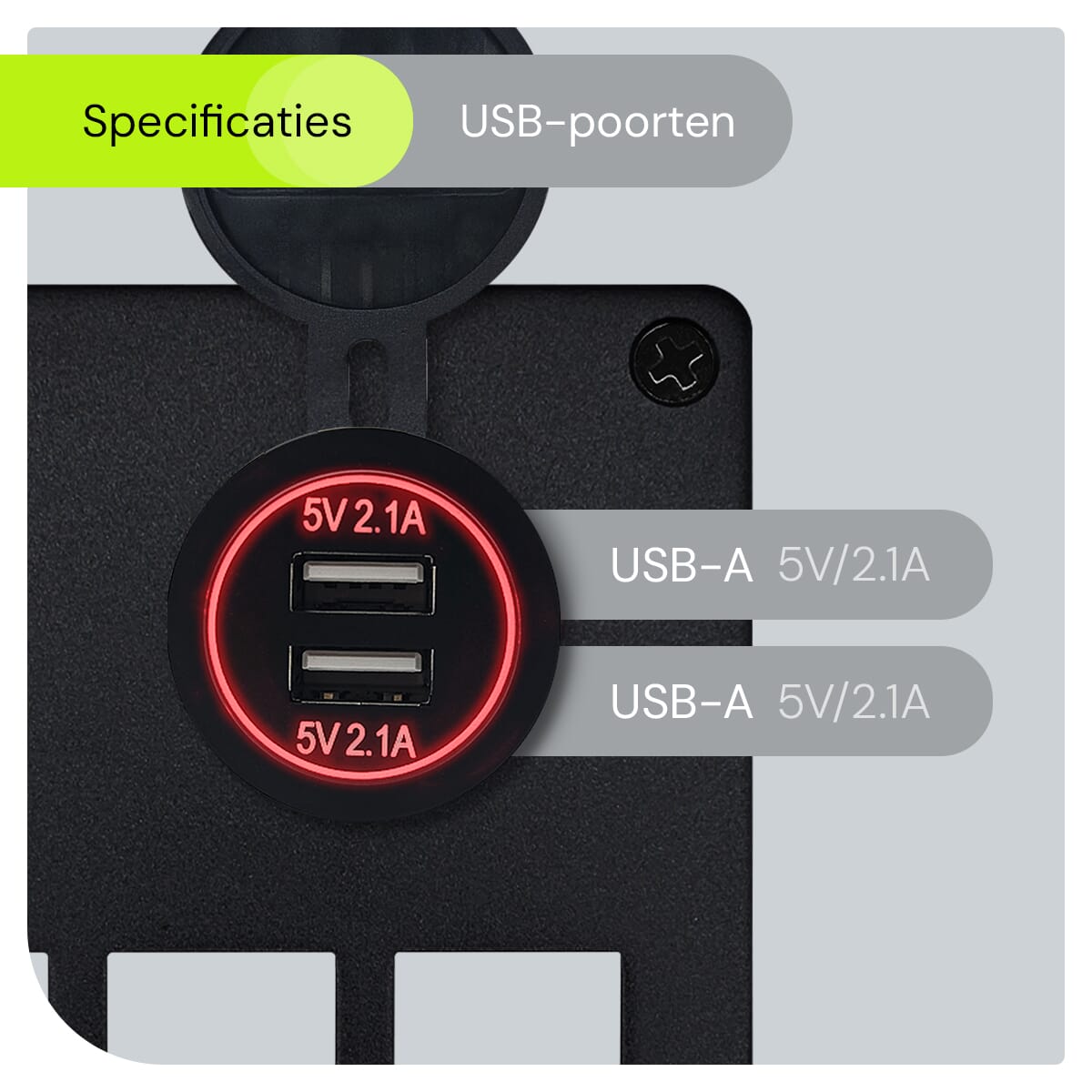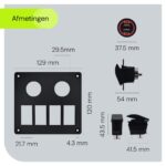 ProRide® Schakelpaneel 12V voor Auto/Boot – USB Stopcontact 4 Poorten – 5V/2.1A – 3 Schakelaars