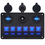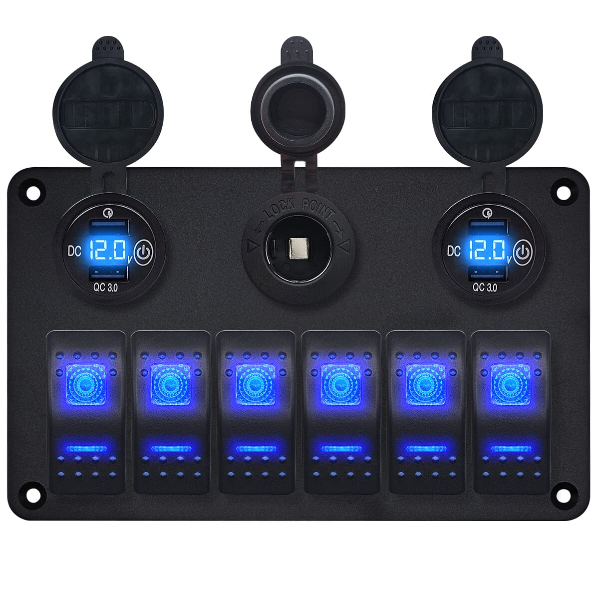 ProRide® Schakelpaneel 12V voor Auto/Boot – USB Stopcontact 4 Poorten met Schakelaar en Voltmeter – QC3.0 – 4 Schakelaars – Blauw