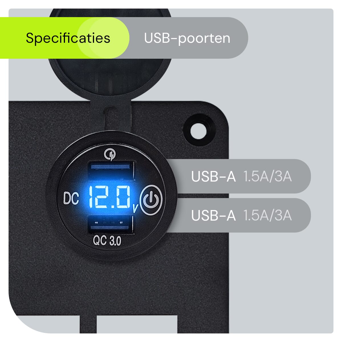 - Geïntegreerde Voltmeter: Monitor de batterijspanning van je voertuig in real-time om altijd verzekerd te zijn van een betrouwbare stroomvoorziening.