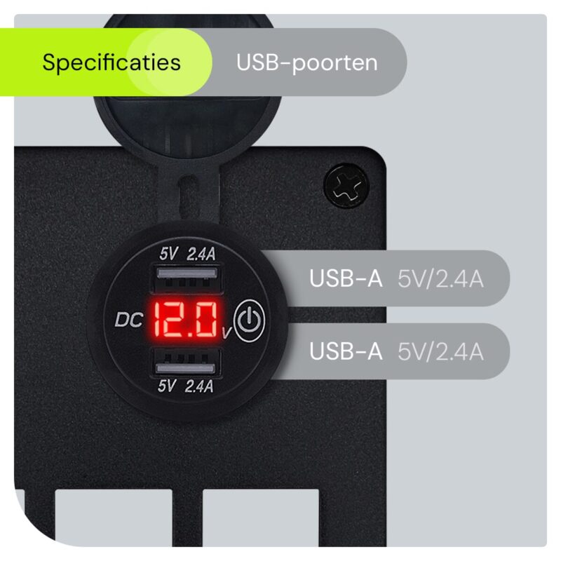 - Efficiënt Opladen: De USB-poorten leveren tot 2.4A per poort voor snel en effectief opladen van mobiele apparaten zoals smartphones en tablets.