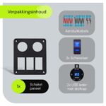 De installatie van dit paneel is ontworpen voor eenvoud en efficiëntie, met alles wat je nodig hebt om snel aan de slag te gaan. Het past naadloos in de configuratie van je auto of boot, waardoor het een onmisbare upgrade is voor je elektrische systeem.