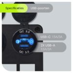 - Snel en efficiënt opladen: De USB-poorten met Quick Charge 3.0 zorgen ervoor dat apparaten tot 4 keer sneller opladen dan standaard opladers.