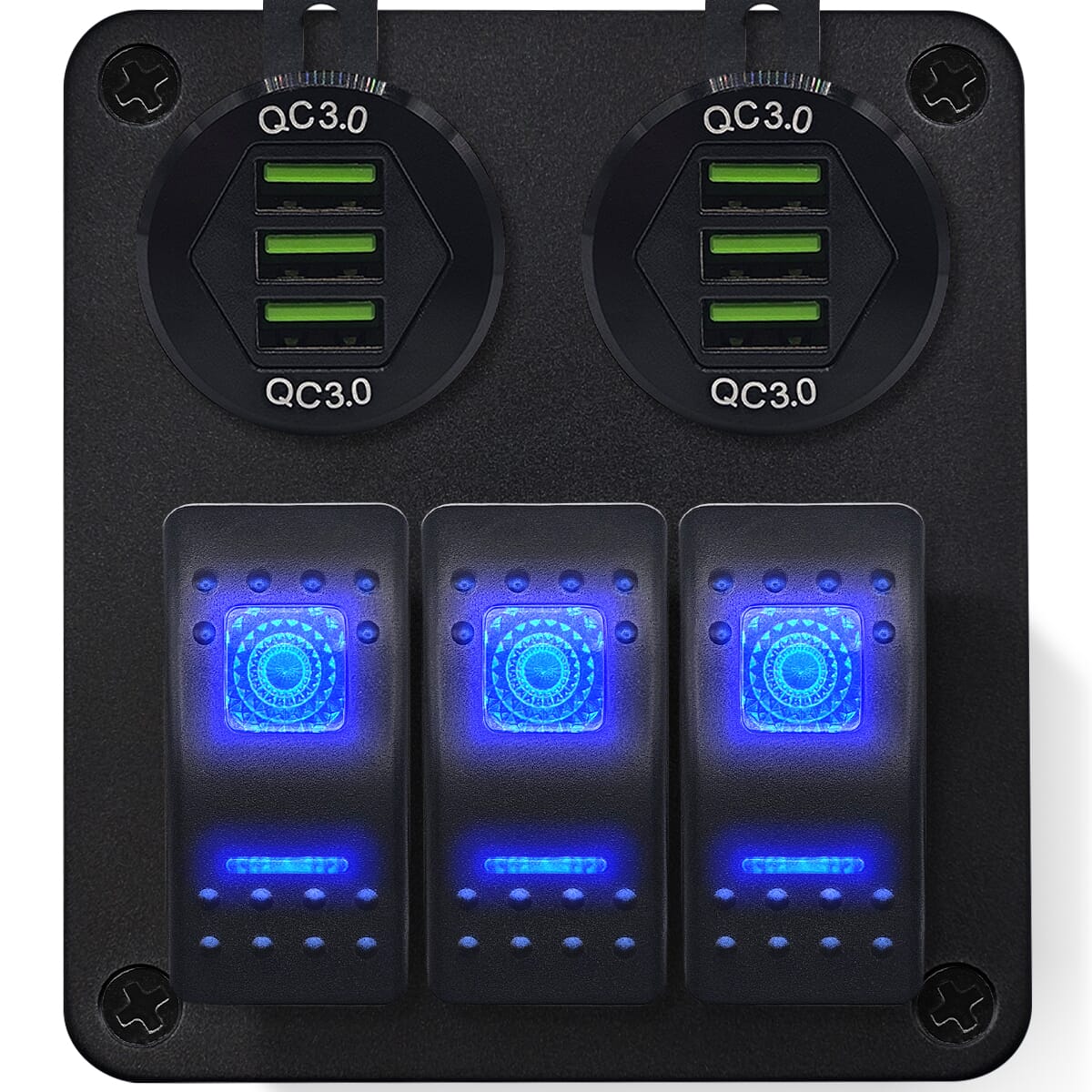 ProRide® Schakelpaneel 12V voor Auto/Boot – USB Stopcontact 6 Poorten – QC3.0 – DS2085B – 3 Schakelaars