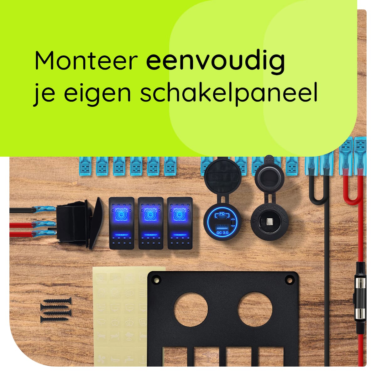 Het ProRide Schakelpaneel 12V is een alles-in-één oplossing die je auto of boot voorziet van meerdere functies. Met twee USB-poorten, waaronder een USB C-poort, kun je meerdere apparaten tegelijkertijd opladen. Daarnaast biedt het paneel een sigaretten stopcontact en vier schakelaars voor extra gemak.