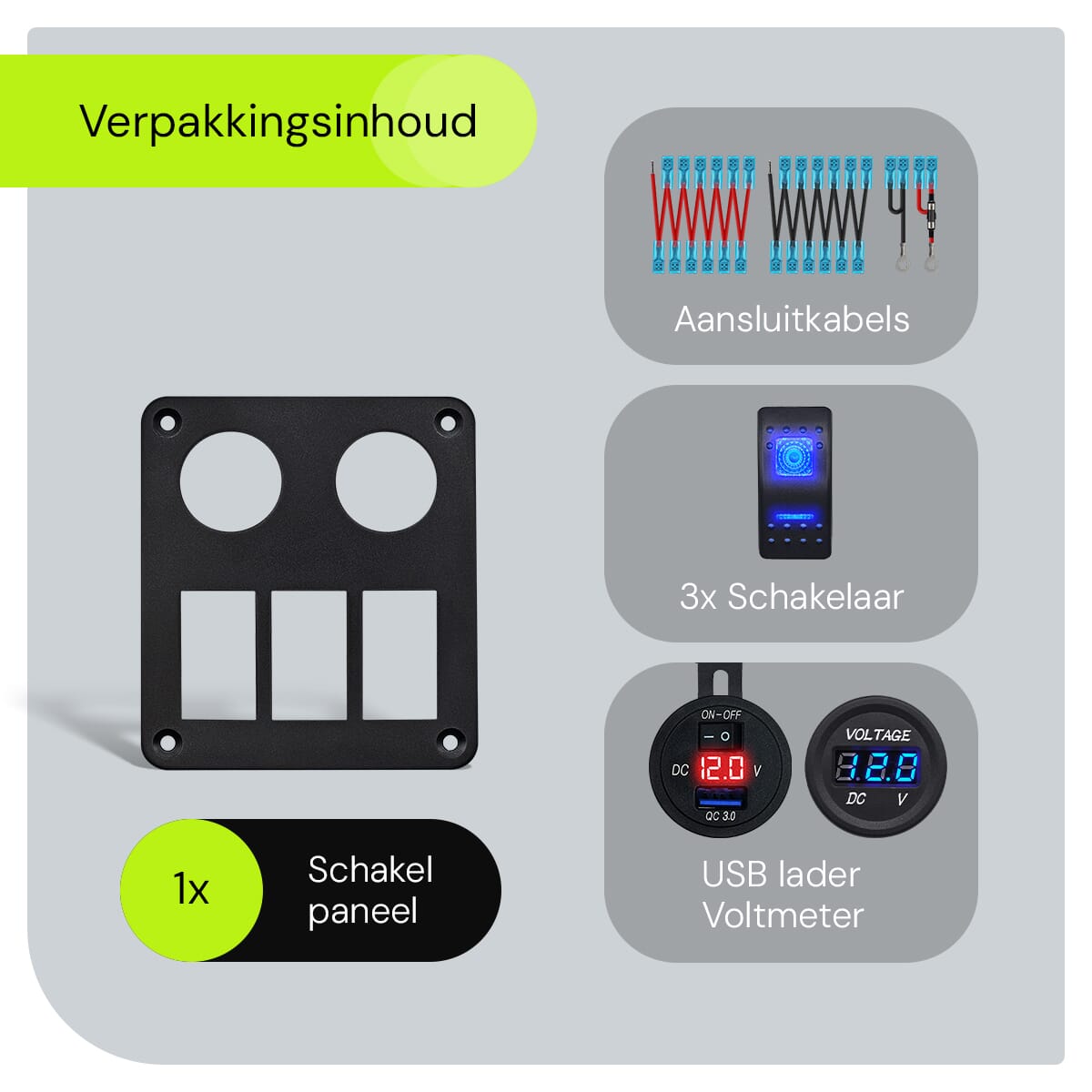 - Multifunctioneel: Combineert schakelaars, USB/USB C lader en voltmeter in één compact paneel.