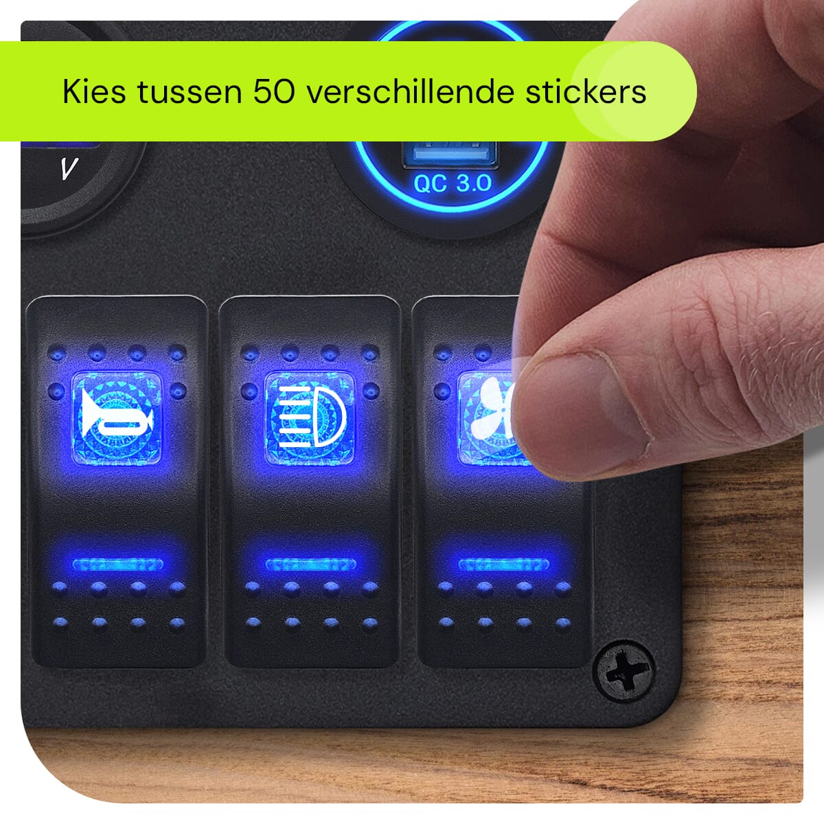 Het schakelpaneel beschikt over zes schakelaars waarmee je eenvoudig verschillende elektrische apparaten kunt bedienen. Of je nu verlichting, een koelkast of andere apparatuur wilt aan- of uitschakelen, met dit paneel heb je alles binnen handbereik.